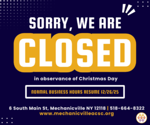 The Mechanicville Area Community Services Center Holiday Assistance is CLOSED. This program will return for Christmas 2025. Sign-Ups for this program will be available early September 2025. Please check back for additional information as it gets closer to Fall 2025.
